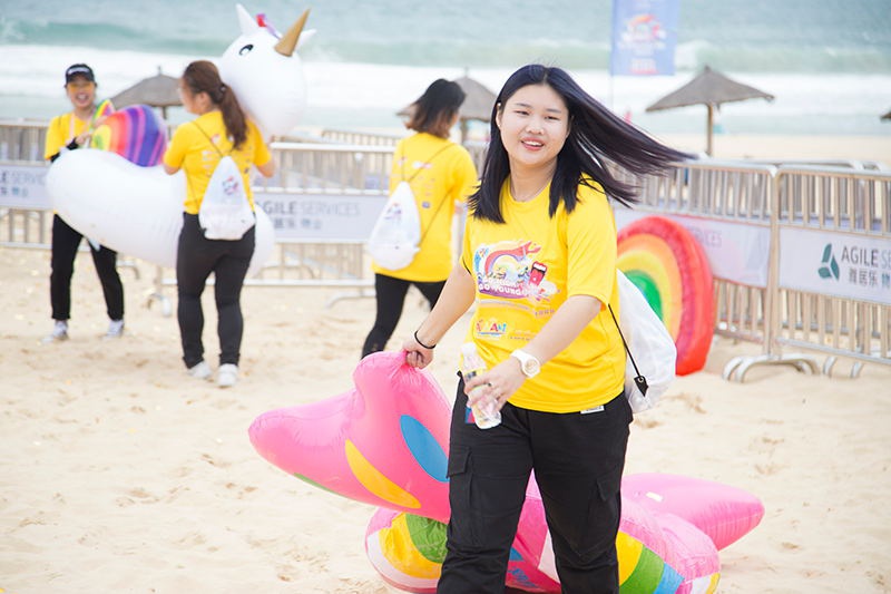 本次活动我院志愿者参与了海洋彩虹泡泡跑及国际沙滩电音节两个项目,主要工作为维持活动现场秩序,确保来自全球68个国家的1000多名游客获得青春、奇妙又安全的度假体验。