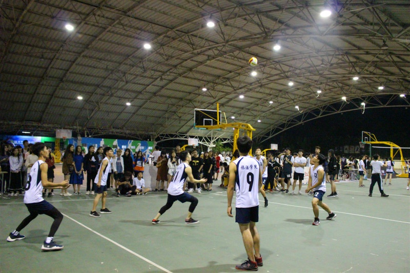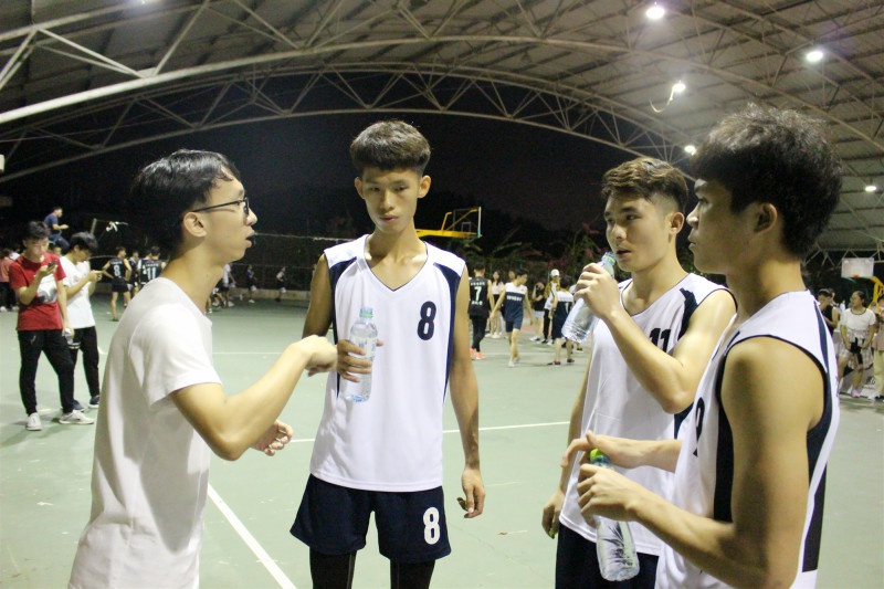 我院男排队员提早到达赛场准备热身运动,随着7:30裁判哨声的响起,队员迅速进入备战状态,坚实有力的马步展现出了他们斗志昂扬的青年姿态,观众也对比赛充满了热情,尖叫声、呐喊声接连不断。上下半场比赛过程中,球员们通过及时商量战术,来做好十足的应对准备,用尽全力去接打每一个球。然而,遇强则强,最后我院男排以落后几分的成绩遗憾落败。