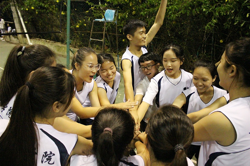 随后进行的是8:30开始的女排比赛,女队员们都信心百倍、整装待发。比赛开场后,法社学院率先夺得3分,但之后我院女排逆流而上,一度以精准的发球扭转比分。下半场队长综合分析战况,调整部分队员,使我院女排一度保持领先优势,最后女排顺利夺得上下两半场赛的胜利。