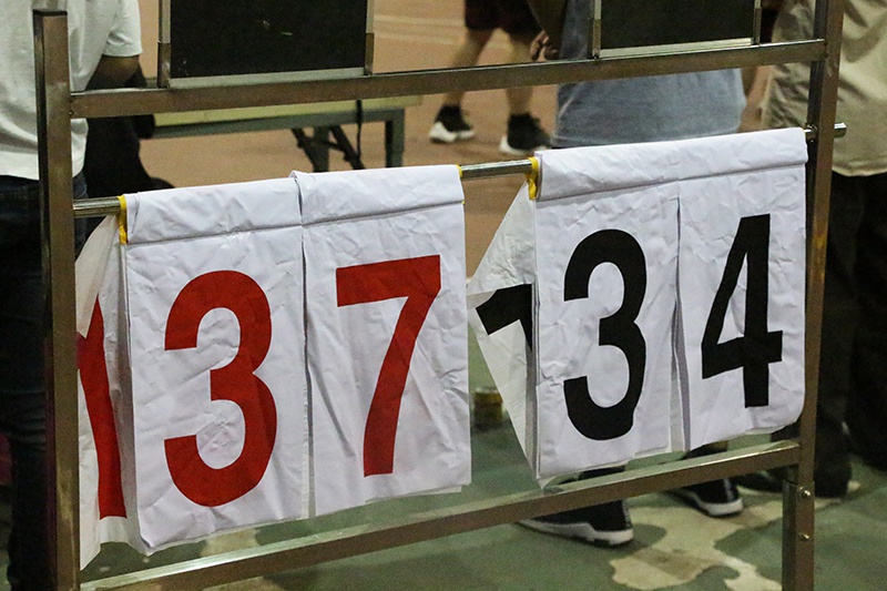 片刻休息之后,下半场的对决赛比上场来得更加激烈,进攻强劲的王翔书记以灵活的身手夺取对方手中的球,迅速传向运球稳扎且速度极快的刘运良老师,刘老师穿过对方的围攻,三步上篮,将比分持平。之后我队进球次数超过对方,比分遥遥领先,与此同时,队伍成员不忘鼓励对方,让整个团队在下半节比赛中变得更加奋勇,势气强压对方,将比赛热点推向高潮。当终止信号发出时,我队以37:34的成绩晋级,这时教师满脸欢喜,这份喜悦难以言表,空气中也弥漫着胜利的氛围。