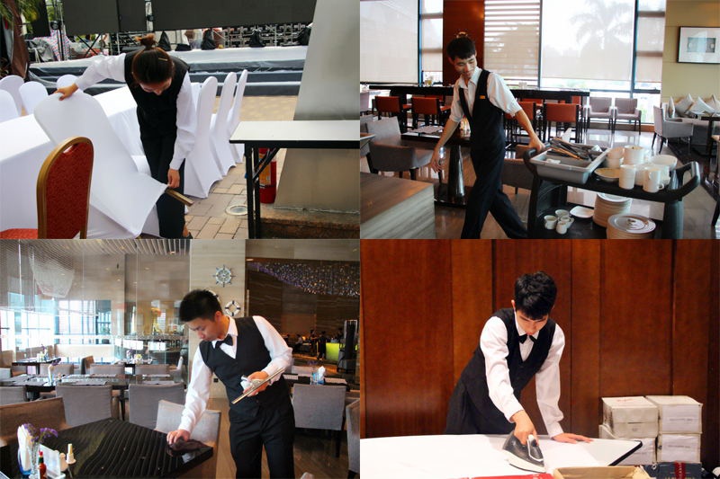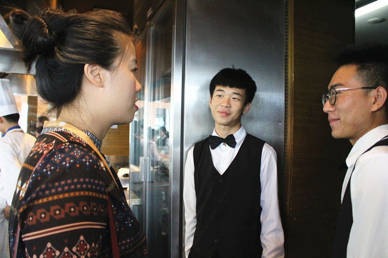 在志愿活动中,志愿者们被分配到销售部、西餐厅、前厅部、宴会厅、酒水部等各个部门。从7日晚上的媒体欢迎晚宴、8日的官方晚宴及宴后酒会,到9日的“王的盛筵”以及“展商之夜”酒会,会场上随处可见我院志愿者们忙碌的身影。无论是在哪个部门工作,志愿者们认真严谨的工作态度受到负责人的一致称赞。