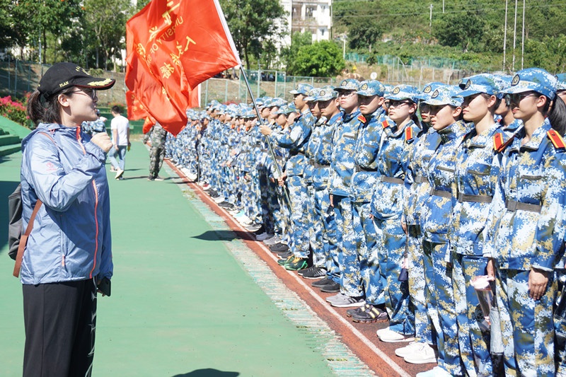 标兵举学院队旗进行拉练