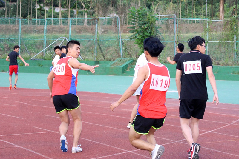 首先开始的是17时10分的男子接力赛,我院罗弟、王家天、刘华楠、袁斌四名选手参加比赛,我院选手提前五分钟结束了检录,到赛道上各就各位,进行最后的热身运动。