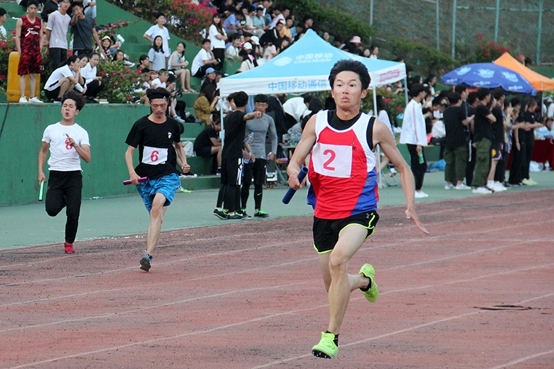 比赛正式开始,只听一声枪响,我院第一棒选手瞬间发力蹬地起跑,如同离弦的箭一般向前冲出。在第二个接力点处,第二棒选手在远处看到自己的队友时便已做好了起跑的准备。第一、二棒交接的时候,只见第一棒选手迅速将手向上一挑,尽力将接力棒向前送去,而第二棒选手则顺势接住棒,然后迅疾地转身奔向第三个接力点处。伴随着我院学生激情澎拜的呐喊声,第四棒选手奋力奔跑着,他与第一名的差距越来越小。最后,在他的奋勇冲刺下,我院以与第一名的微弱差距获得了小组第二名的成绩。