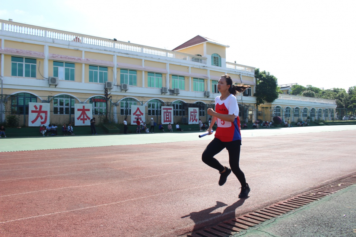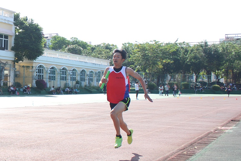 备受瞩目的的接力赛开始了。枪声响起,担任第一棒符泽存奋力向前,空中肆意飘散的头发,面部紧绷的肌肉,紧攥在手中的的接力棒,无不体现着运动员的飒爽英姿。