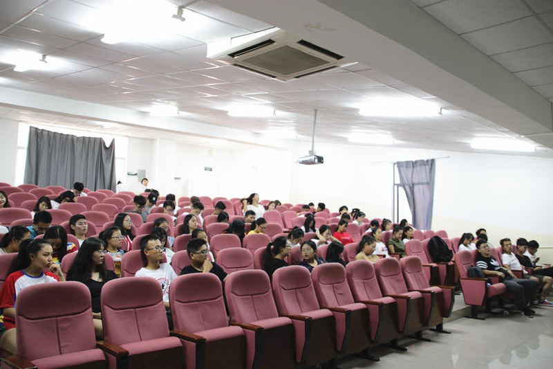 随后,宋老师逐一介绍泳池巡视员、销售助理、游乐园工作、厨师助理、酒店客房五大实习岗位。明确提出泳池巡视员的主要工作是定期检查水质、定期消毒与清除水面杂物。在讲解当中穿插去年学生在游乐园和游泳港实习的视频,让学生直观地感受其实习工作和环境,明晰工作岗位。宋老师提到以往较多学生选择销售助理实习是因为流动人群多,可高效提升口语能力;然而在实习中所积累的经验无论多与少都会对未来就业有一定的影响。最后,强调年满十八周岁,英语沟通能力强、独立自主、能适应新环境、工作积极、愿意接受美国文化的外向的学生具有优先权。