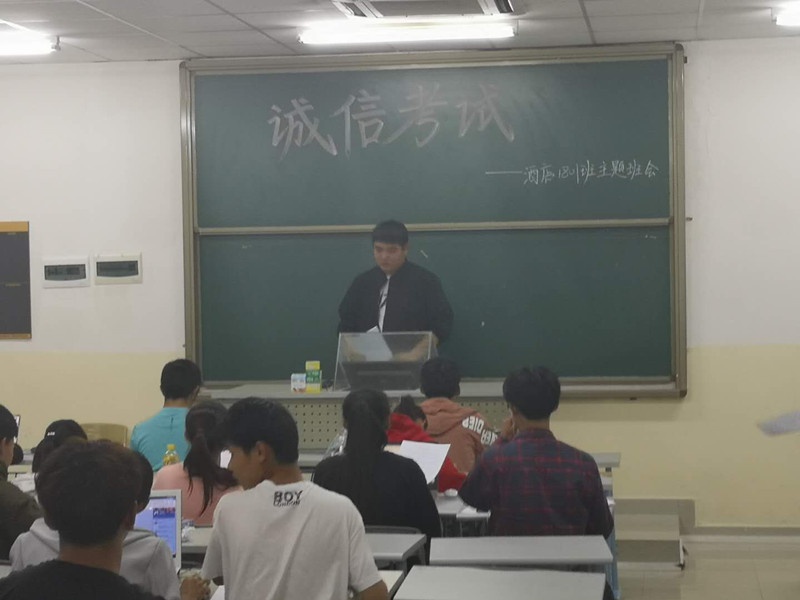 2019年1月3日晚上七点,于书知楼2202教室,酒店1801班举行了诚信考试的主题班会,此次班会由班长杨云龙主持,给大家讲述诚信应考的重要性。