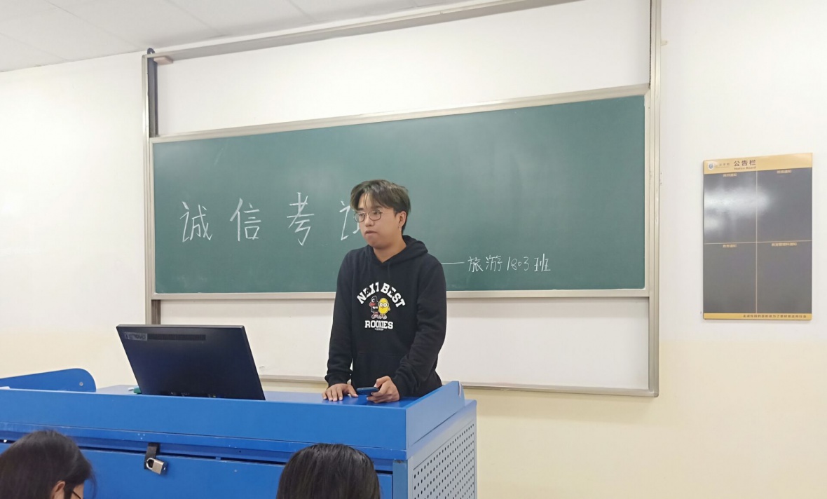 宣读结束后,班长向大家发起倡议。如下:首先要正确认识考试对评价自己的重要性。充分利用时间,认真复习,满怀信心地迎接考试。其次提高自身修养,做一名诚信学生,以诚信的态度对待每一场考试,考出真实水平。最后倡导大家弘扬诚信正义,树立与不良风气作斗争的信心和勇气,勇于检举揭发考试作弊行为。
