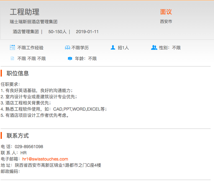 瑞士瑞斯丽酒店管理集团-工程助理