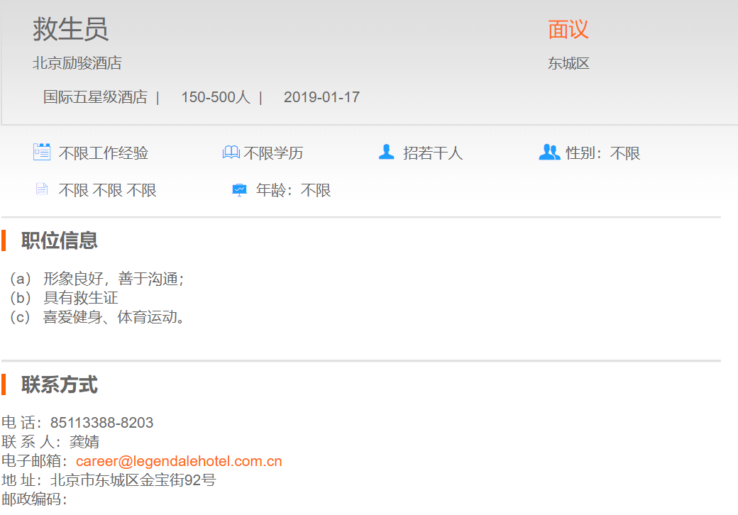 北京励骏酒店救生员