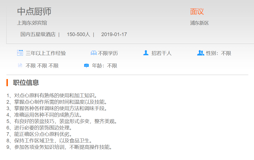 上海东郊宾馆中点厨师