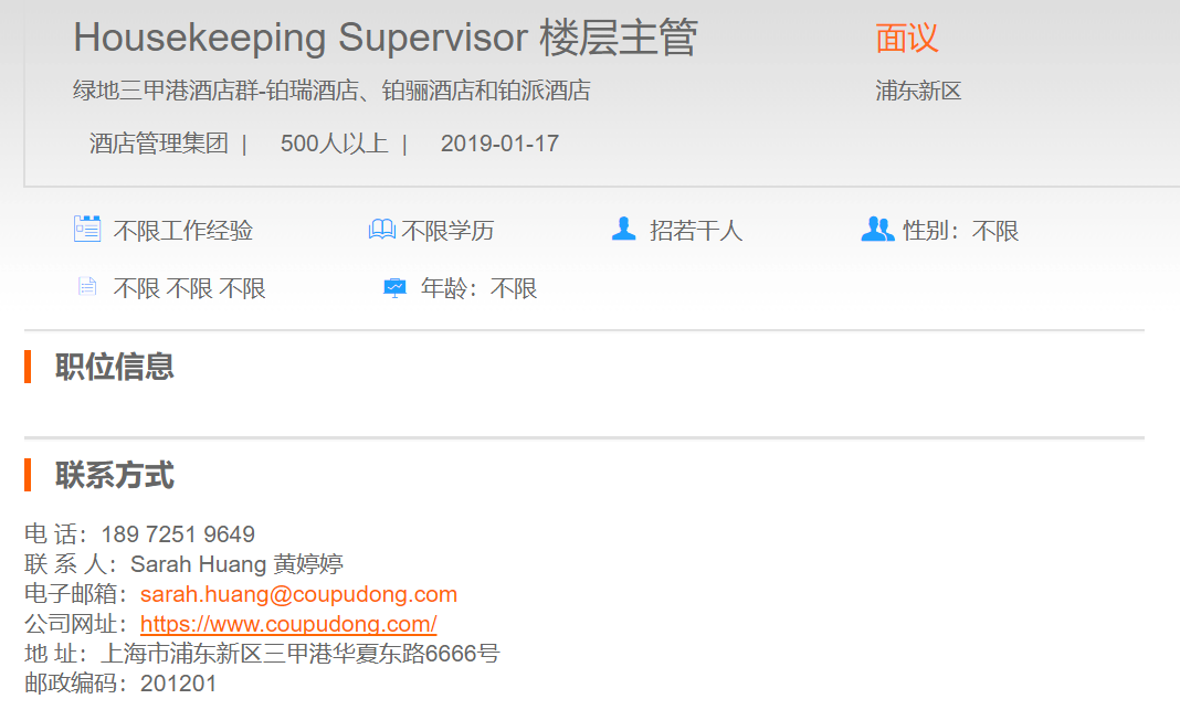 绿地三甲港酒店群楼层主管