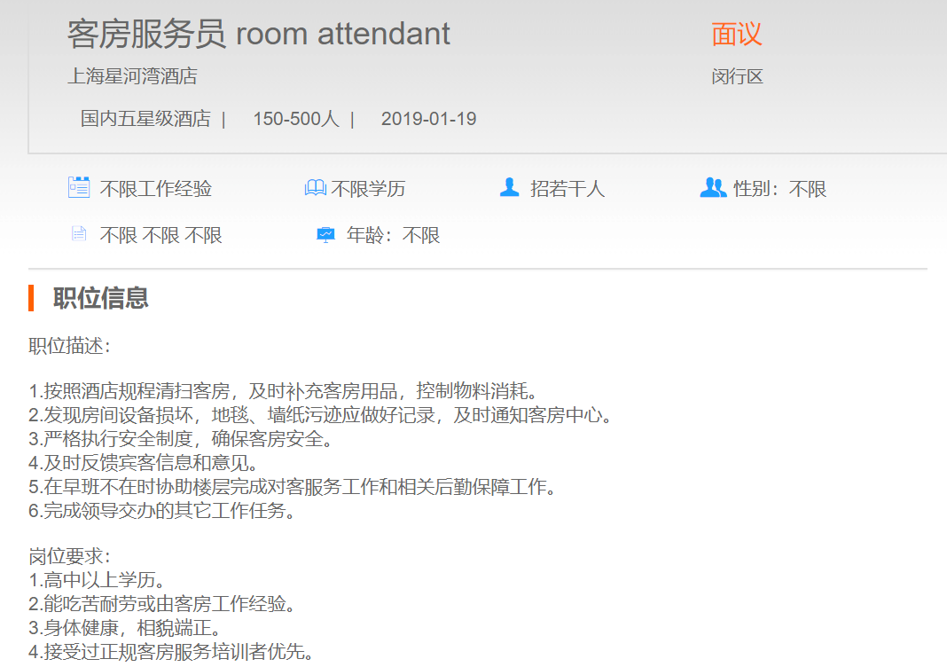 上海星河湾酒店客房服务员