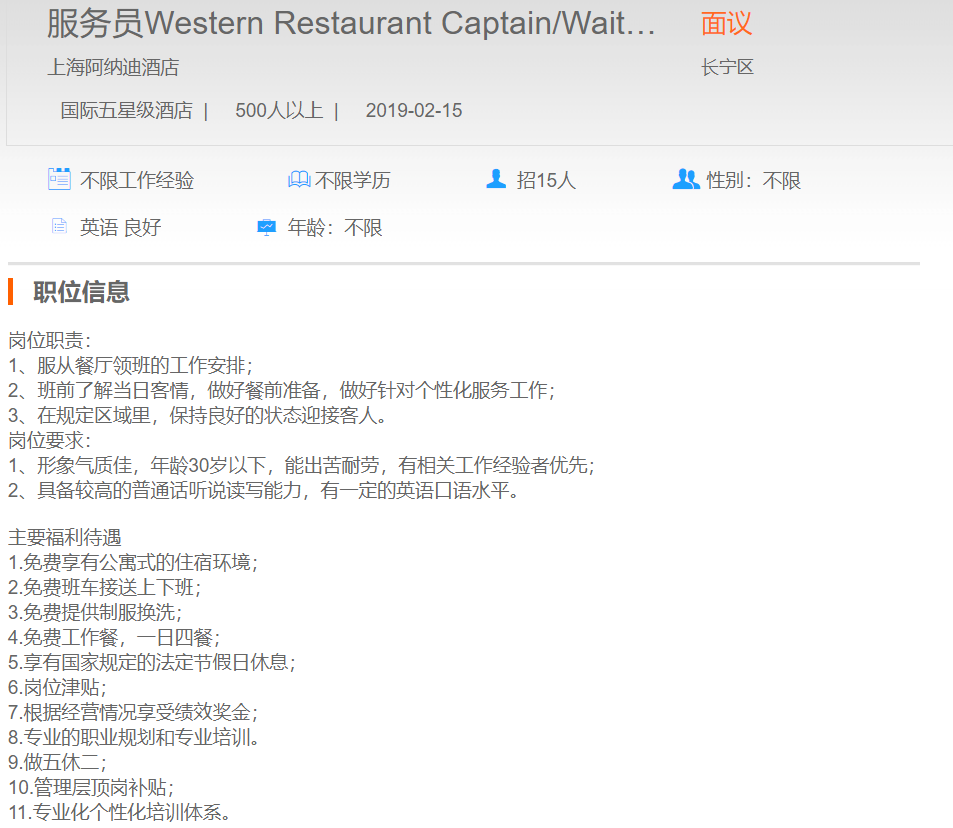 上海阿纳迪酒店服务员