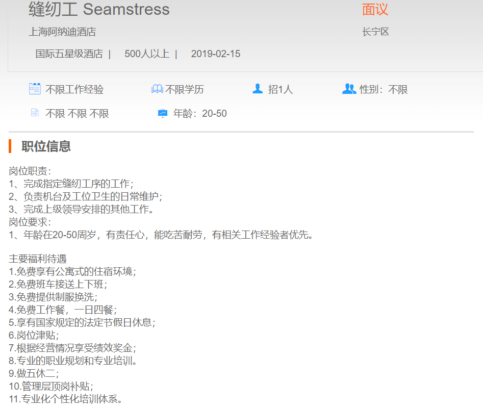上海阿纳迪酒店缝纫工