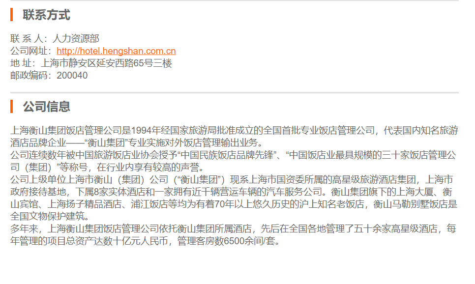上海衡山集团饭店管理公司总部业务助理