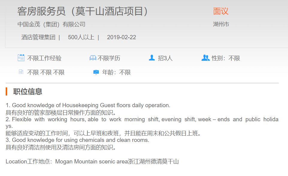 中国金茂有限公司客房服务员
