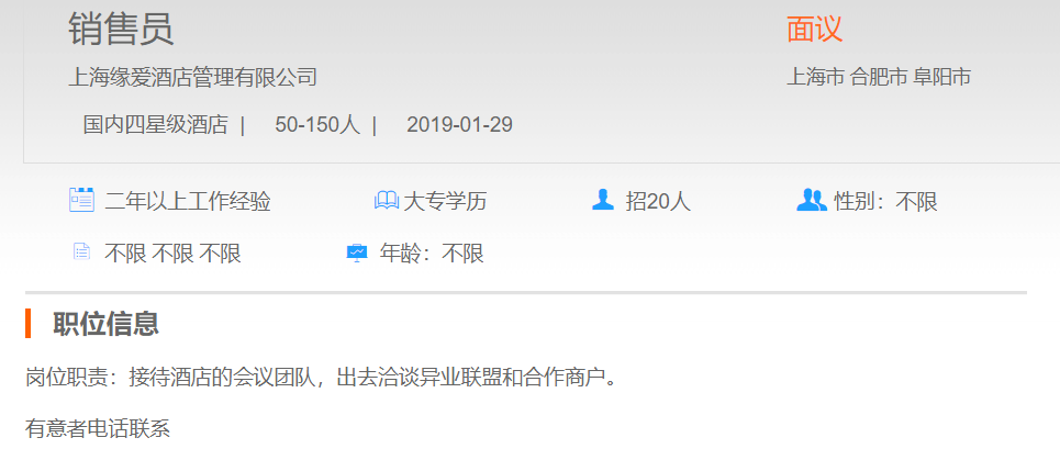 上海缘爱酒店管理有限公司销售员