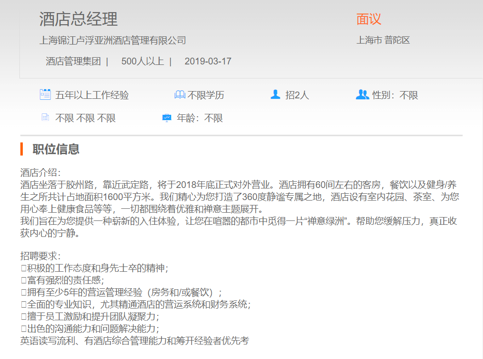 上海锦江卢浮亚洲酒店管理有限公司行政部酒店总经理