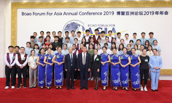 博鳌亚洲论坛2019年年会于3月26日至29日在海南博鳌举行,于29日落下帷幕,本届年会主题为“共同命运 共同行动 共同发展”,来自五大洲60多个国家和地区的2000多位政界、工商界代表和智库学者参加了本届年会,并在这里展开智慧与思想的碰撞。经过层层选拔,最终我院120余名志愿者有幸参与到本届年会志愿服务中,展现出9159金沙游戏场阳光学子良好的精神风貌和专业精神,圆满地完成了各项志愿服务工作。