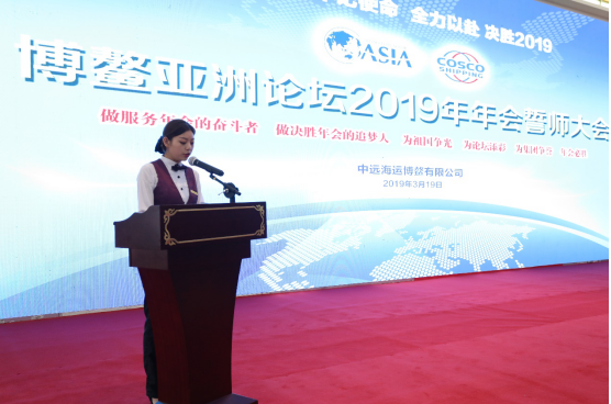 博鳌亚洲论坛2019年年会誓师大会于3月19日举行,届时我院国旅1701班的志愿者林邑谦作为年会全体志愿者代表发言,“激扬青春力量,为亚论增光增彩”,如志愿者方队口号一般,我院志愿者们绽放光彩。