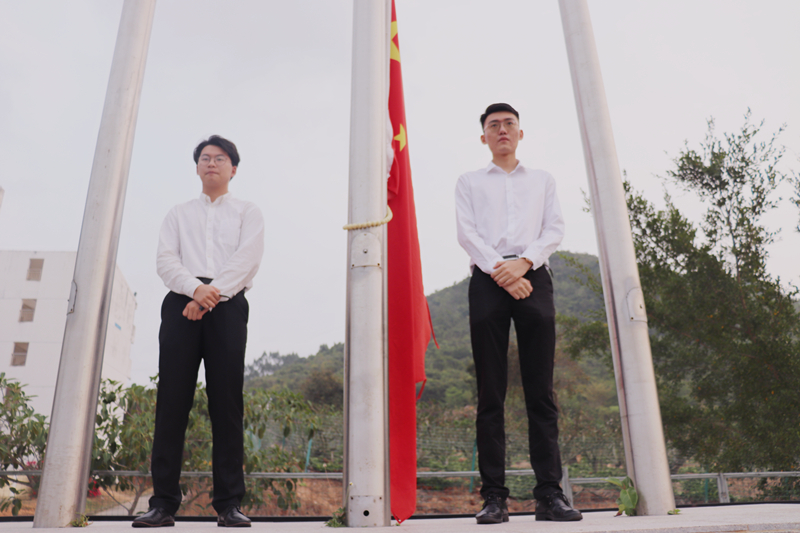 升旗仪式第一项:升国旗、奏国歌、行注目礼。看似简单的三部曲,提醒着新青年要时刻铭记心念祖国,居安思危。看着缓缓上升的国旗,伴随着响亮的国歌,学生渐渐融入庄严的氛围。看着那随风飘扬的国旗,不禁让学生们想起那些为祖国牺牲的战士们,想起四川凉山为救火而牺牲的年轻将士,他们在危急时刻将生死置之度外,即使在离开的最后一刻也未与家人见过一面,这种大局意识值得当代青年学习。