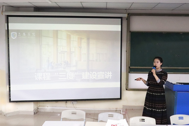 宣讲开始之前,李琴老师首先对同学们进行了简单的提问,关于“三度”是哪三度,当即就有同学回答是深度、广度、紧张度。李琴老师表示,“三度”建设是学校现阶段展开的重要宣讲活动,本次宣讲将从背景缘起和政策解读两部分给同学们进行详细讲解。