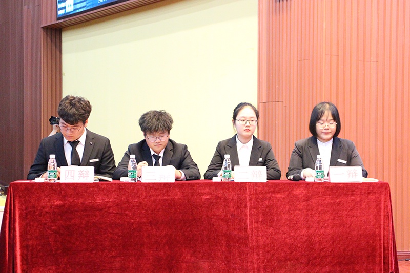 此次辩论赛分为开篇陈词、法庭式盘问、申论、双方対辩、自行小结、自由辩论、评委提问、总结陈词这八个环节。随着双方一辩选手对自己的观点各自陈词完毕后,这场辩论赛就此拉开了帷幕,一场无硝烟的“斗争”真正开始了。