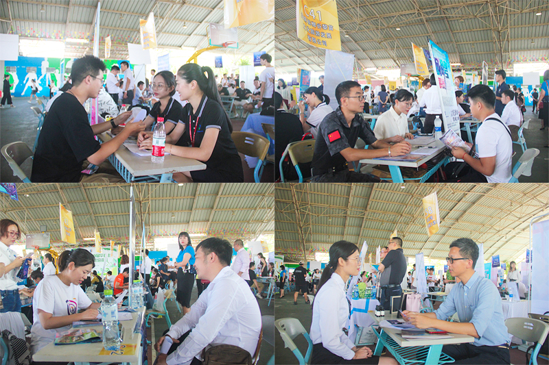 各个学院即将毕业的学生纷纷赶往风雨球场,身着正装,以严肃认真的态度对待此次招聘,在两百多家用人单位中挑选自己心仪的岗位进行面试。各个公司的招聘口都置有一个介绍其公司的简介牌和详细的纸质版介绍,全面地展示了自己公司的情况,这有利于毕业生们更好的了解其面试公司的相关事宜。除此之外,部分公司甚至贴心的为面试人员准备了小礼物。在面试过程中,招聘人员向学生们积极地介绍自己公司,面试人员认真聆听并提出自己的疑问,以便做出准确的判断。