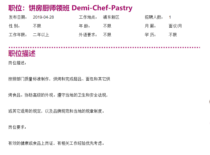 上海滴水湖皇冠假日酒店病房厨师领班