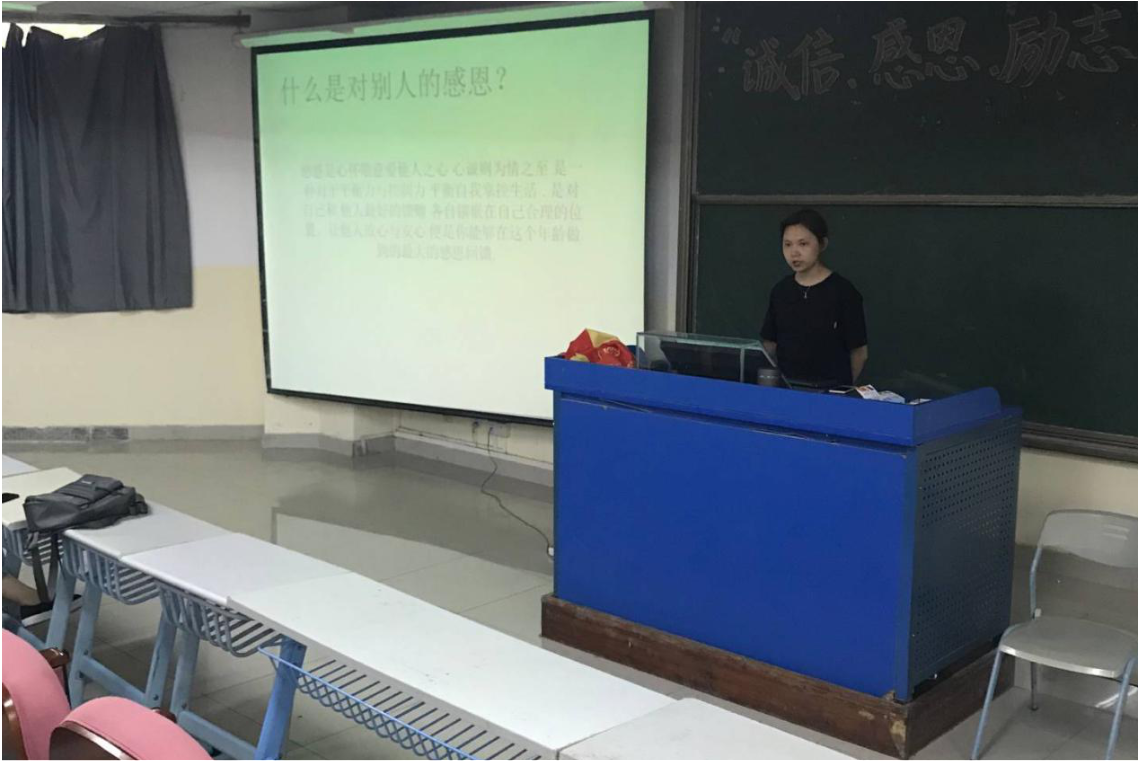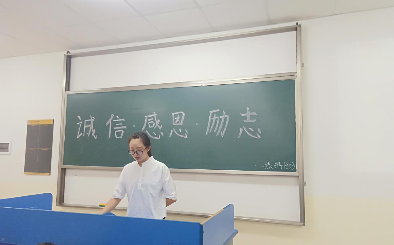 为进一步加强对学生知恩感恩宣传,加强学生的思想政治教育和感恩诚信教育,营造优良校风,促进和谐文明校园建设,不断强化资助育人理念,全面构建资助育人质量提升体系,我院特开展“诚信感恩宣传教育”主题活动。旅游管理1801、1802、1803班,会展经济与管理1801班,酒店管理1801、1802班为响应本次活动于书知楼开展主题班会,班级全体同学到场,思想导师祝弘扬、程璐分别出席各班班会。