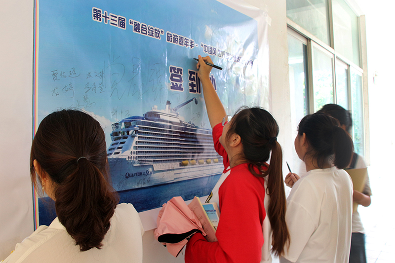 5月14日下午4时,旅酒学院第十三届“融合绽放”旅游嘉年华——“中国风,世界梦”航线设计大赛在书知楼1208正式开幕,邮轮专业负责人余有勇老师及专业教师张颖超、杨樨、冯超等出席了本次活动并担任评委,我院邮轮专业16、17级学生共组建了4支队伍参与本次赛事的角逐。