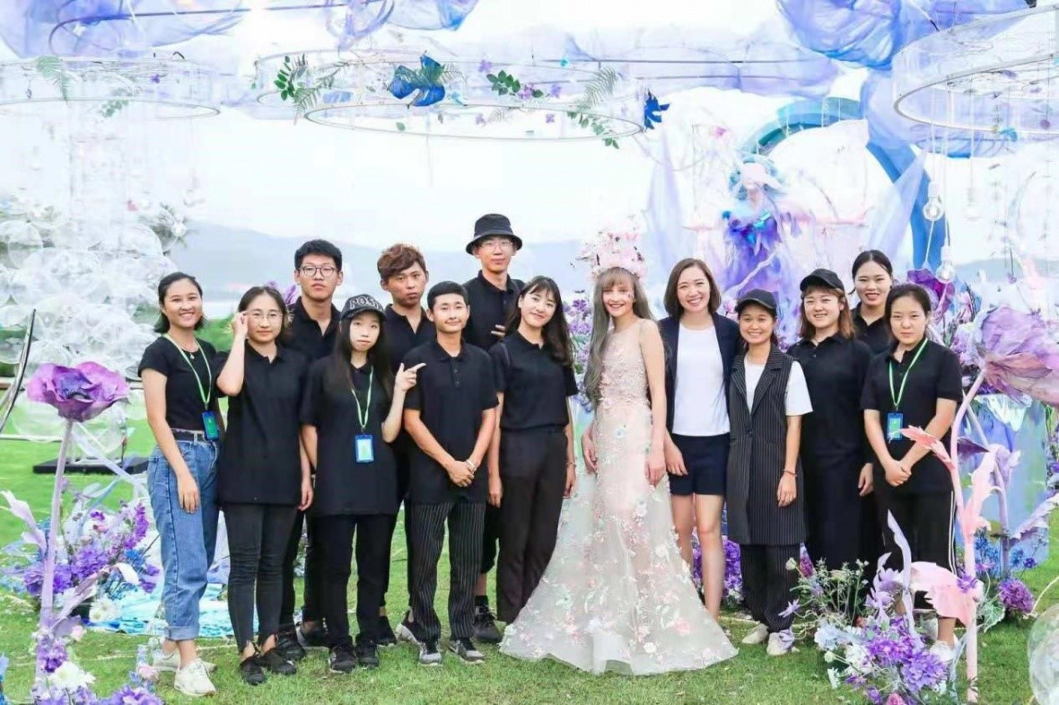 唯町秀婚礼实习生在婚礼风尚活动结束全体员工与模特的合照