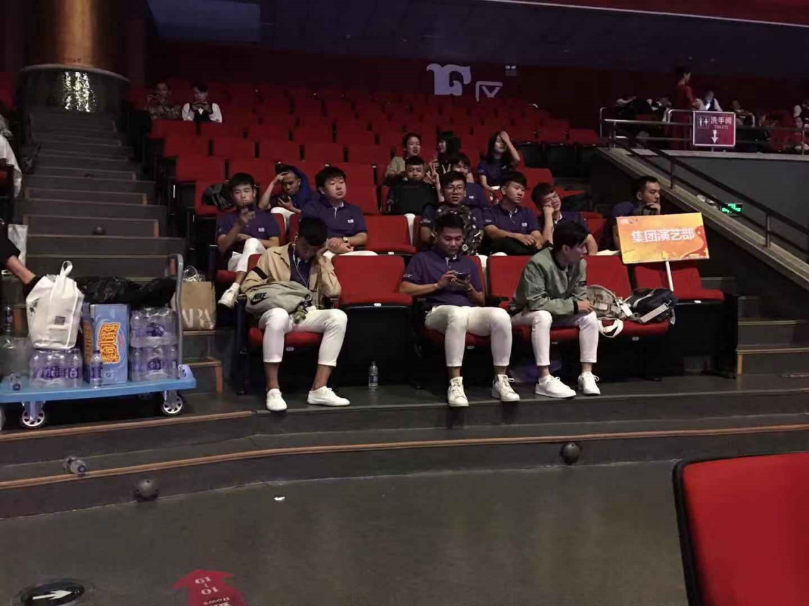 在比赛当天,虽然我院实习生都要早起赶专车,所有人都睡眠不足,但是没有人抱怨,所有人都在自行调整状态,利用空余的时间尽可能的休息,准备将最好的精神面貌展现给所有的观众。在参赛的四位实习生中,来自旅游管理专业旅行社1701班的王捷在团队里被其他成员称为“大壮”,是在表演前“打call”的主力军。该队伍的负责人曾经评价其为:“大壮的歌唱的有点跑调,但是这喊口号倒是一绝”。