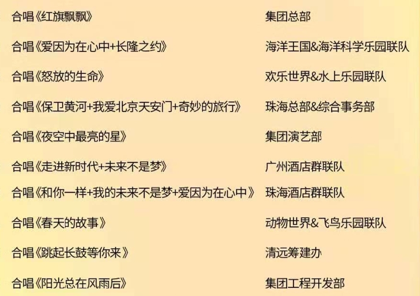本次合唱比赛由来自长隆旗下各个分单位共计11支队伍,长隆国际大马戏和珠海马戏城两家单位联手,组成了集团演艺部代表队。