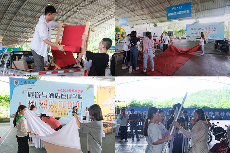 为打造独一无二的迎新会场,也为更好的给新生留下难忘的第一天,我院于9月6日下午,在风雨球场布置迎新场地。由执行院长柴勇、党总支副书记王翔、团委书记吴小柳、团委副书记李琴,思想导师石玲、刘文琦、李湘婷和王曦茜共同带领下,迎新志愿者们积极参与布置会场,学院倾情付出,只为等“你”来。