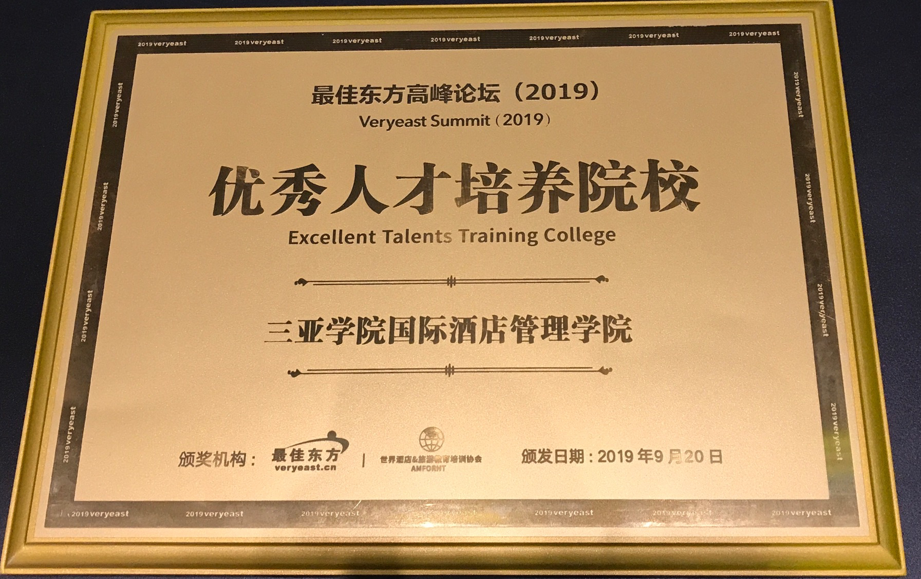 我院荣获“2019最佳东方优秀人才培养院校”奖