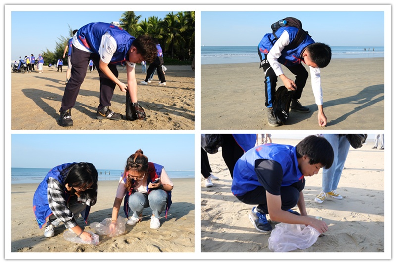 目前海洋环境变的越来越“面目全非”,从各个地方飘来的“海漂”垃圾越来越多,为了拯救我们的海洋环境,也为支持三亚市创卫巩卫工作,加强学生们的海洋保护意识,我院团学组织部分成员在思想导师刘文琦的带领下于11月16日7时,前往三亚湾进行净滩活动。