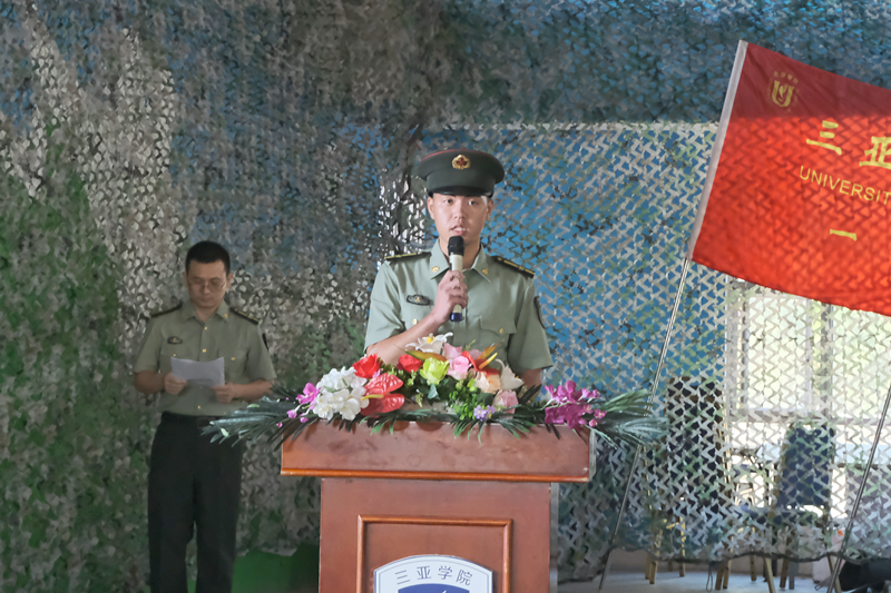 随后教官代表发言保证,一切从自身做起,树立良好榜样,以身作则,认真履行一名教官应尽的职责。希望同学们也能严于律己,继承和发扬“不怕苦”、“不怕累”的精神,努力拼搏,圆满完成军训任务。