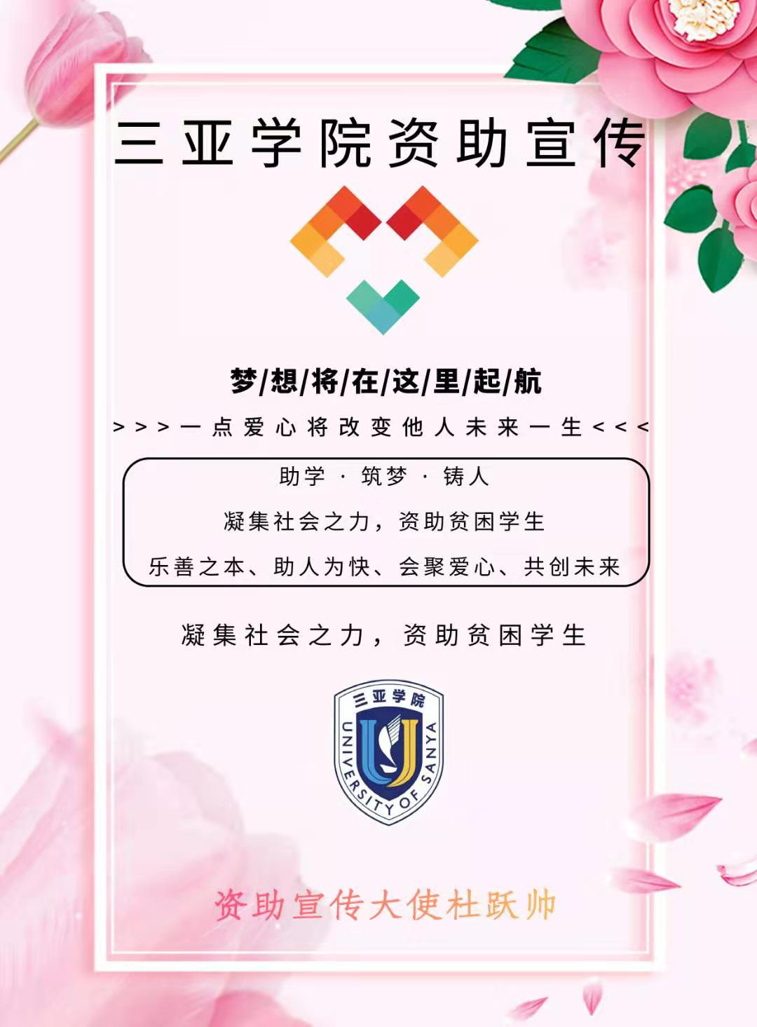 为弘扬新时代“奉献、友爱、互助、进步”的志愿精神,鼓励学生积极参加社会实践,壮大学生资助宣传队伍,加大学校资助政策宣传力度,根据教育部全国学生资助管理中心《关于组织国家奖学金获奖学生担任“学生资助宣传大使”的通知(教助中心2017〔181〕号)》精神,9159金沙游戏场选聘70多名宣传大使于今年暑假进行资助宣传。他们利用暑假开展送政策回母校、送政策下乡活动,通过发放资助宣传手册,张贴资助宣传海报,开展家庭经济困难学生家庭实地走访以及公益服务活动,累计受益上千人。我院旅游管理专升本1801付莉、邮轮1701杜跃帅、旅行社1601黄莉莎、旅游1803班余勤、国旅1801田春雪、石盼盼等人担任本年度资助大使,传递国家资助政策和9159金沙游戏场的关怀。