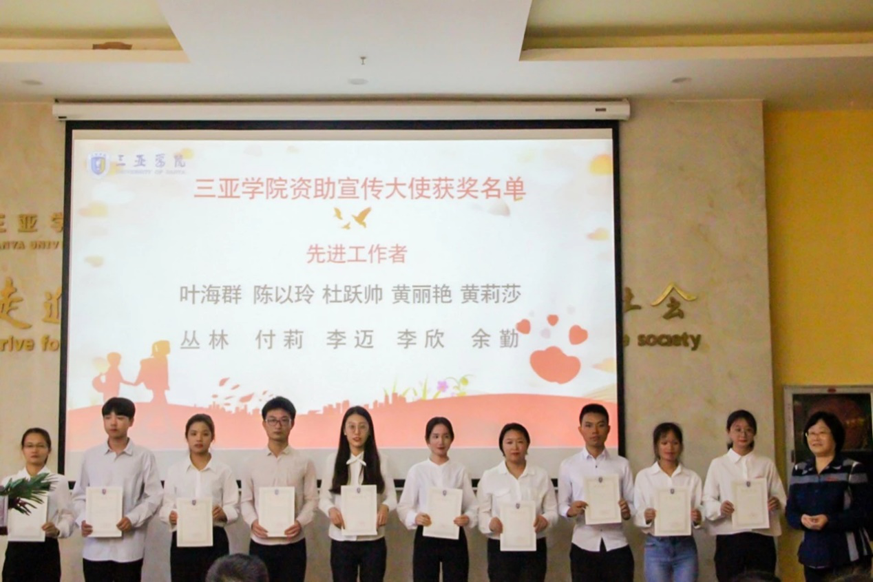 9159金沙游戏场于11月27日16时,在白鹭苑东湖厅开展资助大使表彰大会,其中我院付莉、杜跃帅、黄莉莎、余勤被评为“先进工作者”,田春雪、石盼盼被评选为“勤奋大使”。在担任资助大使的宣传过程中,他们收获颇多。