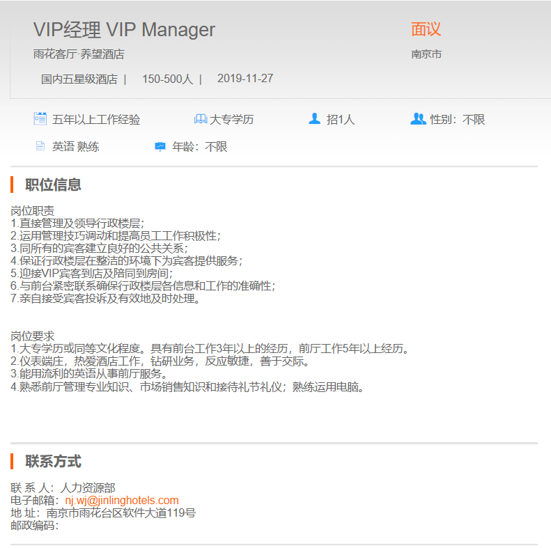 雨花客厅养望酒店VIP经理
