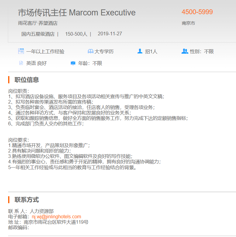 雨花客厅养望酒店市场传讯主任