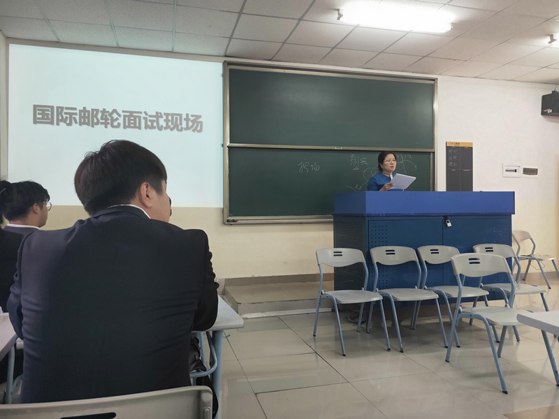 旅游1801班全体同学经过一周时间准备的国际邮轮模拟招聘会于11月29日16时开始。邮轮招聘模拟是以小组为单位分别进行汇报,每个小组人员使出浑身解数,展现个人才艺等,力求在小组展示中获得好成绩。张颖超老师对此提出了两项要求:具备模拟招聘剧本,全英文招聘并脱稿,不仅锻炼学生的组织能力,更能提高学生英语口语表达能力。