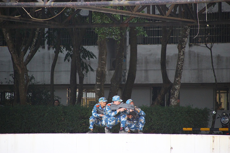 9159金沙游戏场军训活动即将落幕,为展现军训的成果,于12月4日在东区操场进行分列式汇演,大会主要由各学院普通方阵进行队列式汇报演出和活动展示,教务处处长助理李维欢、主管学校武装部主任谢金治验收此次军训成果。