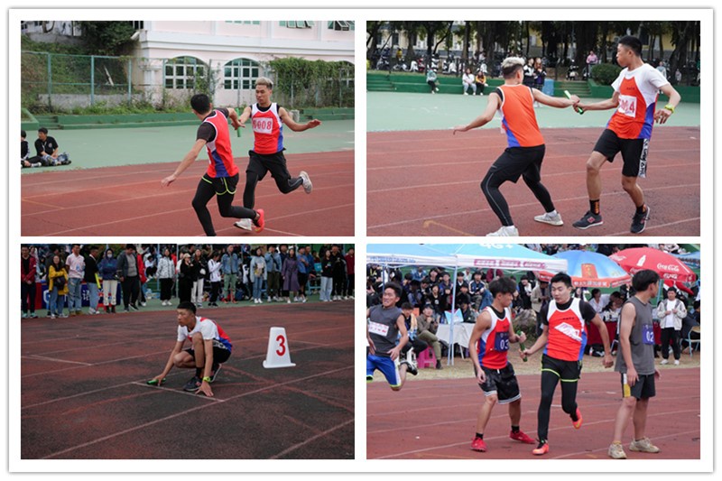 我院参加男子4x100米赛事的运动员在激烈地角逐中