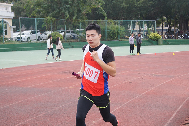 紧接着,学生组女子4x400米决赛开始,我院女子组也不甘示弱,朱艳婷作为第一棒选手正定从容,当抢声发出后,瞬间发力蹬地起跑,如同离弦的箭一样向前冲出,接力棒的交接是整场比赛中最为吸引人的环节。我院每一位运动员都会在前一位冲出时,迅速摆好姿势,迎接力量的传递。最终,我院女子4x400接力决赛以第三名的好成绩为这次比赛画上一个完美的句号。