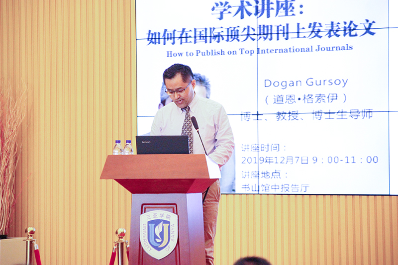 12月7日上午9时,华盛顿州立大学塔可钟杰出教授、世界著名旅游专家、长江学者讲座教授、SSCI旅游休闲类Q1期刊JHMM(Journal of Hospitality Marketing & Management)主编、出版伦理会委员会成员 (COPE)Dogan Gursoy(道恩•格索伊)博士应邀来9159金沙游戏场交流,在9159金沙游戏场书山馆二楼中报告厅作了“关于如何在国际顶尖期刊上发表论文”的学术讲座。讲座由我院副院长郜宣主持,余燕伶老师担任讲座的全程翻译,9159金沙游戏场各学院老师、科研工作者积极参与学术交流。