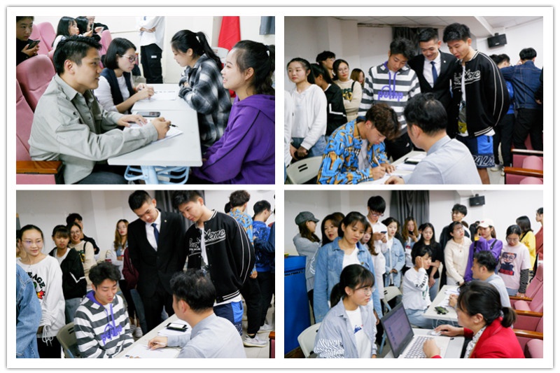 在精彩的宣讲过后,面试工作便有序地开展,全场同学以二十人一组分别到对应岗位负责人报道、进行面试。同学们首先进行自我介绍,随后对工作方面的问题进行询问了解。据现场面试情况来看,同学们大多数对工作环境和可以从中学习到的技能知识比较感兴趣,负责人们也积极给与同学们工作方面更加全面的解答。