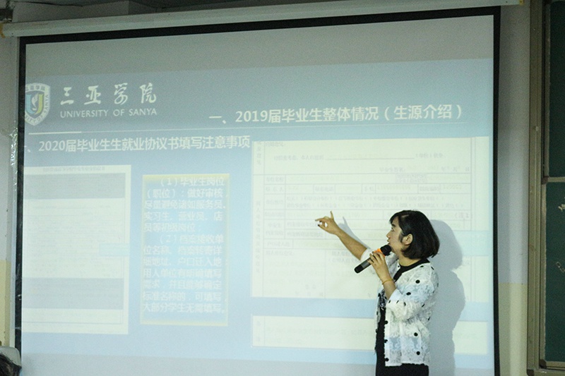 石玲老师表示本次班会的召开有助于学生明晰就业材料准备的注意事项,能够顺利毕业,同时对就业协议书的各项内容进行了详细讲解,着重强调对填写工作单位以及加盖公章的要求,并指出就业协议书是就业工作极其重要的文件,切不可马虎大意,力求一次性填写到位。对于选择考研、创业、留学的学生,学院要求提供相关证明并将空白协议交还。